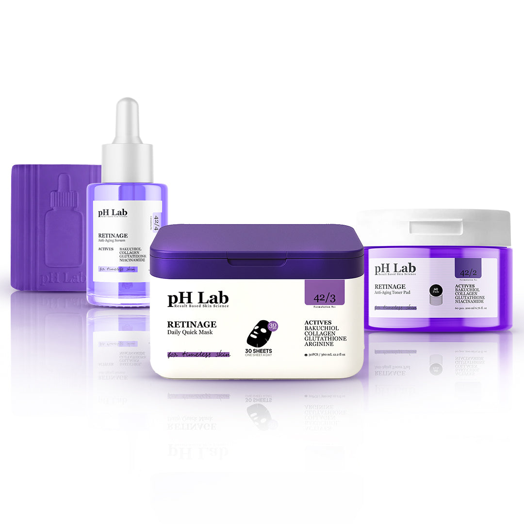 Retinage, bitki bazlı retinol alternatifi olan Bakuchiol ile cilt yenilenmesini desteklerken; Kolajen cilde elastikiyet kazandırır, dolgun ve genç bir görünüm sağlar.