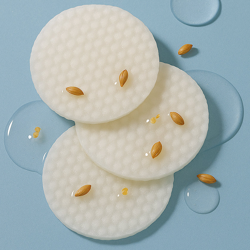 Emboss (kabartmalı) yüzey cildi nazikçe arındırır. Düz yüzey, aktif içerikleri cilde homojen şekilde yedirir.